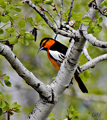 Bullock's orioles, fresh snow on the peaks, Western tanager (May 21):