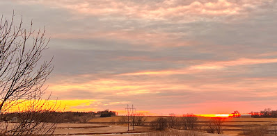Cold sunset, purple mountains majesty, ice, night sky (Dec. 22):